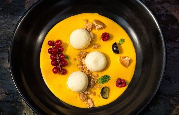What to eat? The chef’s tasting menu is a colourful procession of small bites, such as house-made paneer with sarson saag (mustard greens in a creamy and spicy sauce) and pickled onion, or meetha achaar pork ribs. The ribs, which have been on the menu since day one, are served with sour green apple and a sweet mango pickle sauce – a tribute to Mehrotra’s first job at a South-East Asian restaurant. The degustation offers the full experience, with a vegetarian version also permanently on offer, but there’s a comprehensive à la carte menu and a four-course lunch too.